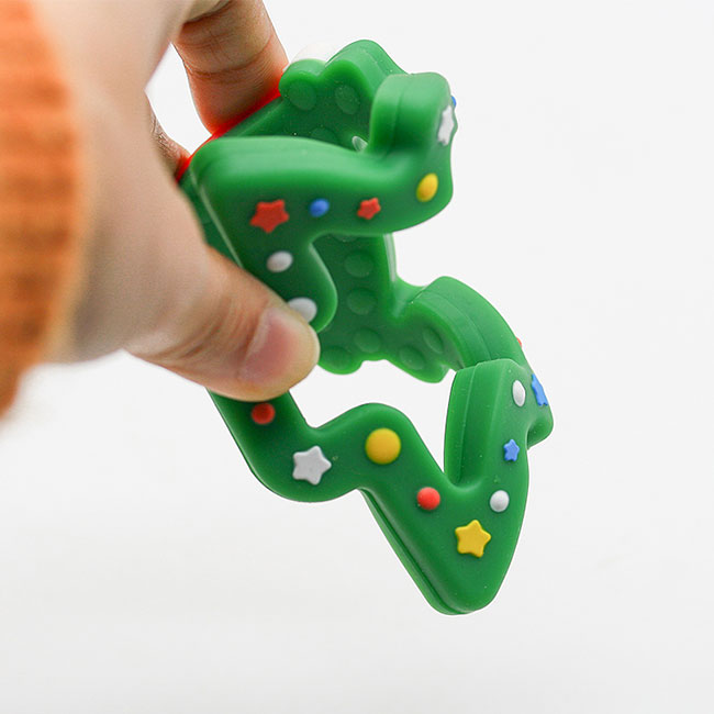 而且與其他牙膠不一樣的是,圣誕樹牙膠有著許多凹凸不平的顆粒,這些顆粒可以按摩牙床,也可以幫助寶寶緩解各種的不適。